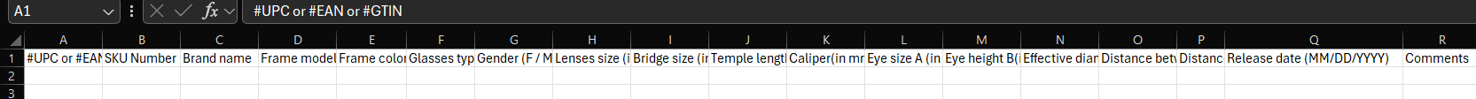 - #UPC or #EAN or #GTIN: give us only one of those 3. It is the unique worldwide code for a frame.
