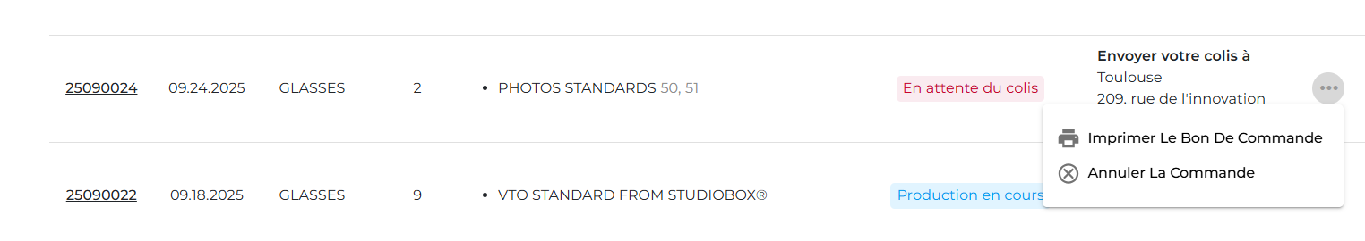 Le bon d’expédition est également disponible depuis l’onglet « Mes commandes ».