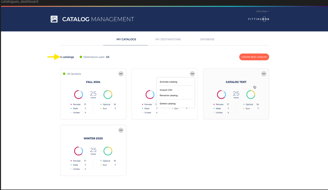 Sur le tableau de bord MES CATALOGUES, vous verrez :