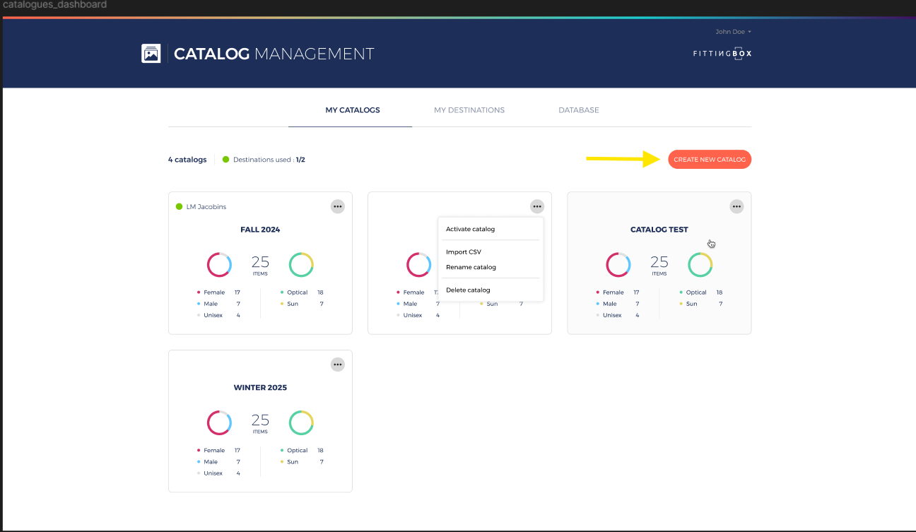 - Un bouton CRÉER UN NOUVEAU CATALOGUE.