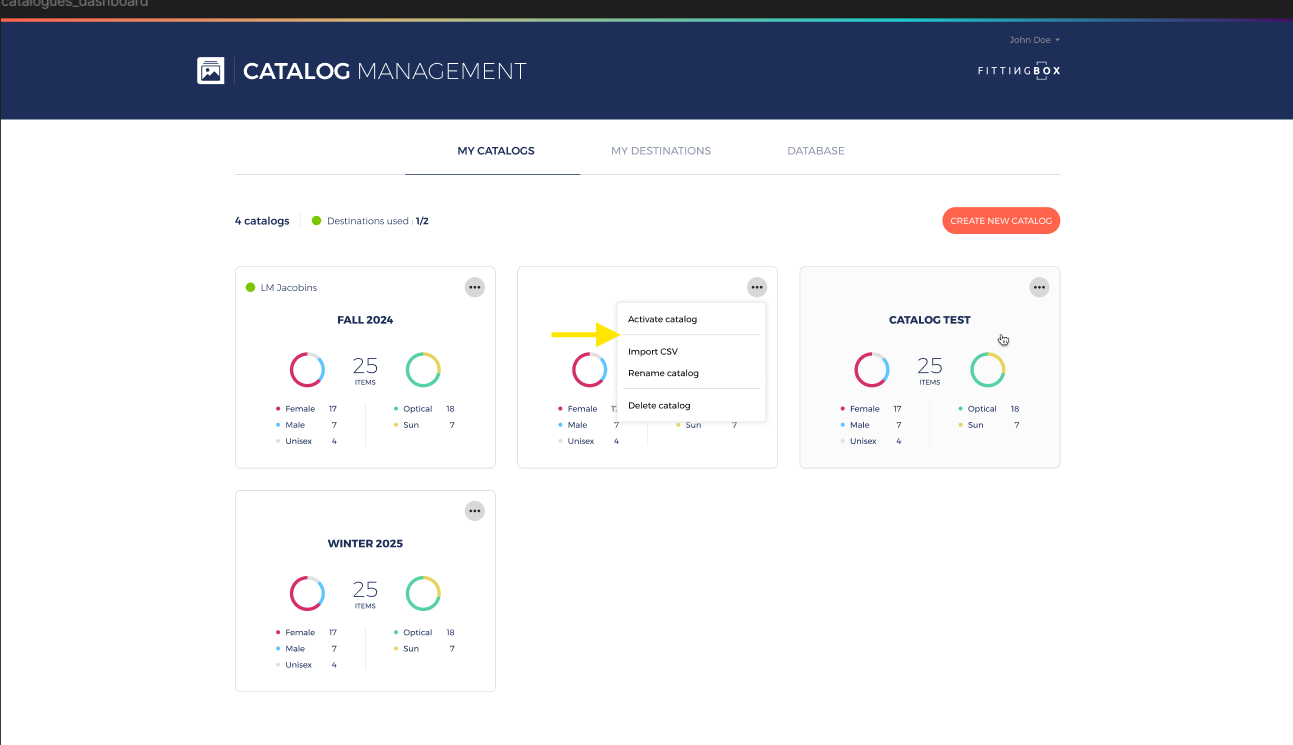 Cliquez sur ACTIVER pour rendre votre catalogue actif.