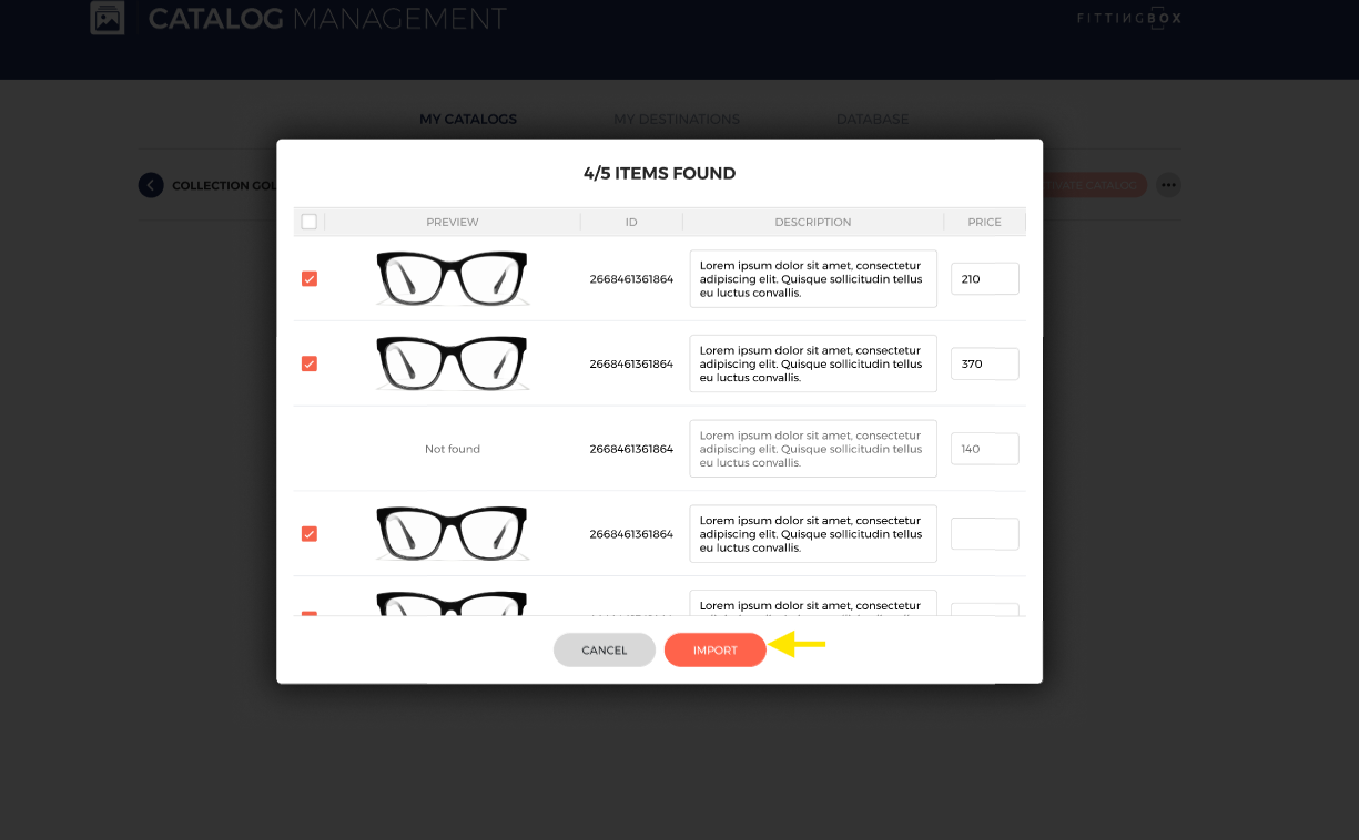 Après avoir vérifié vos articles, cliquez sur ACTIVER LE CATALOGUE pour le rendre actif.