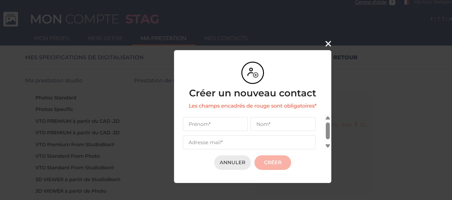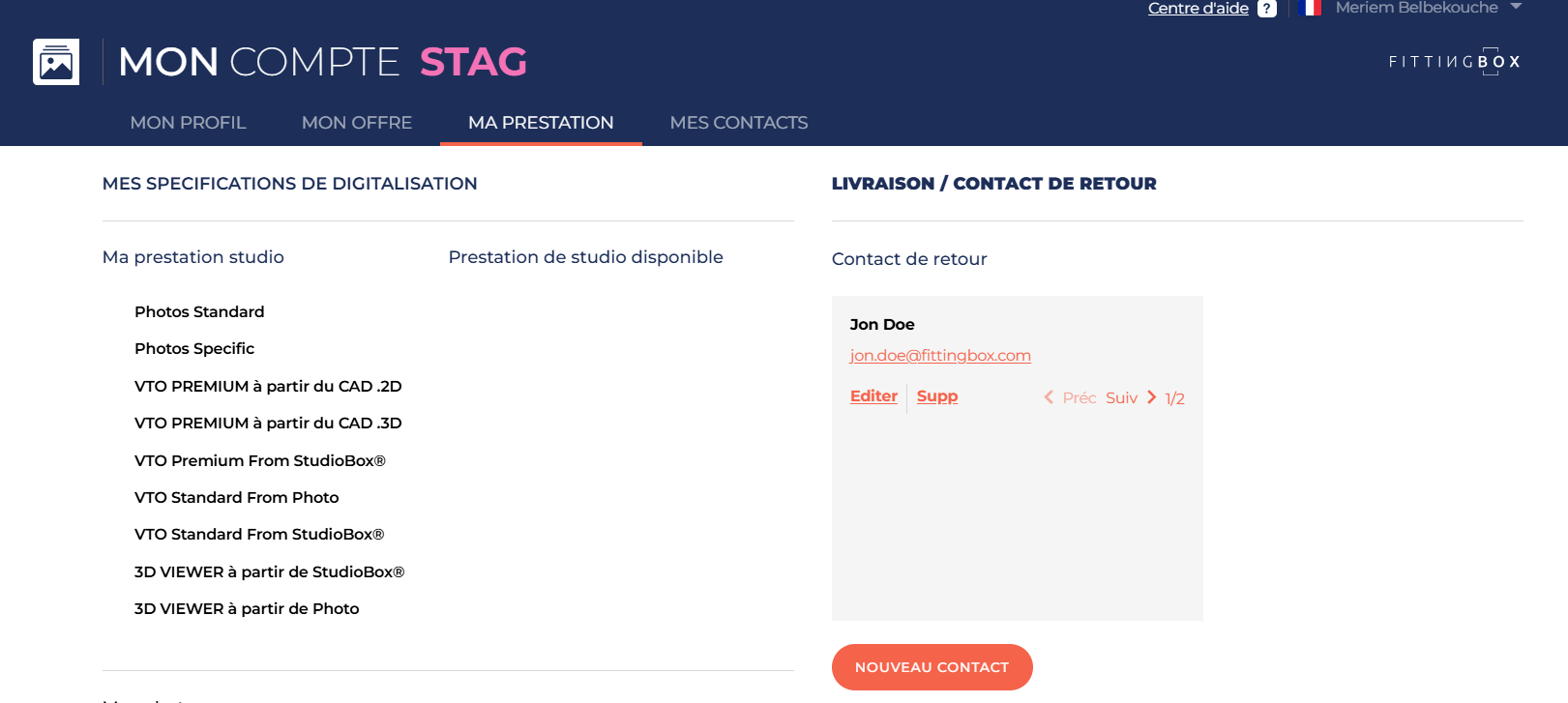 Dans la section Contact pour la livraison de la digitalisation, cliquez sur le bouton Nouveau contact.