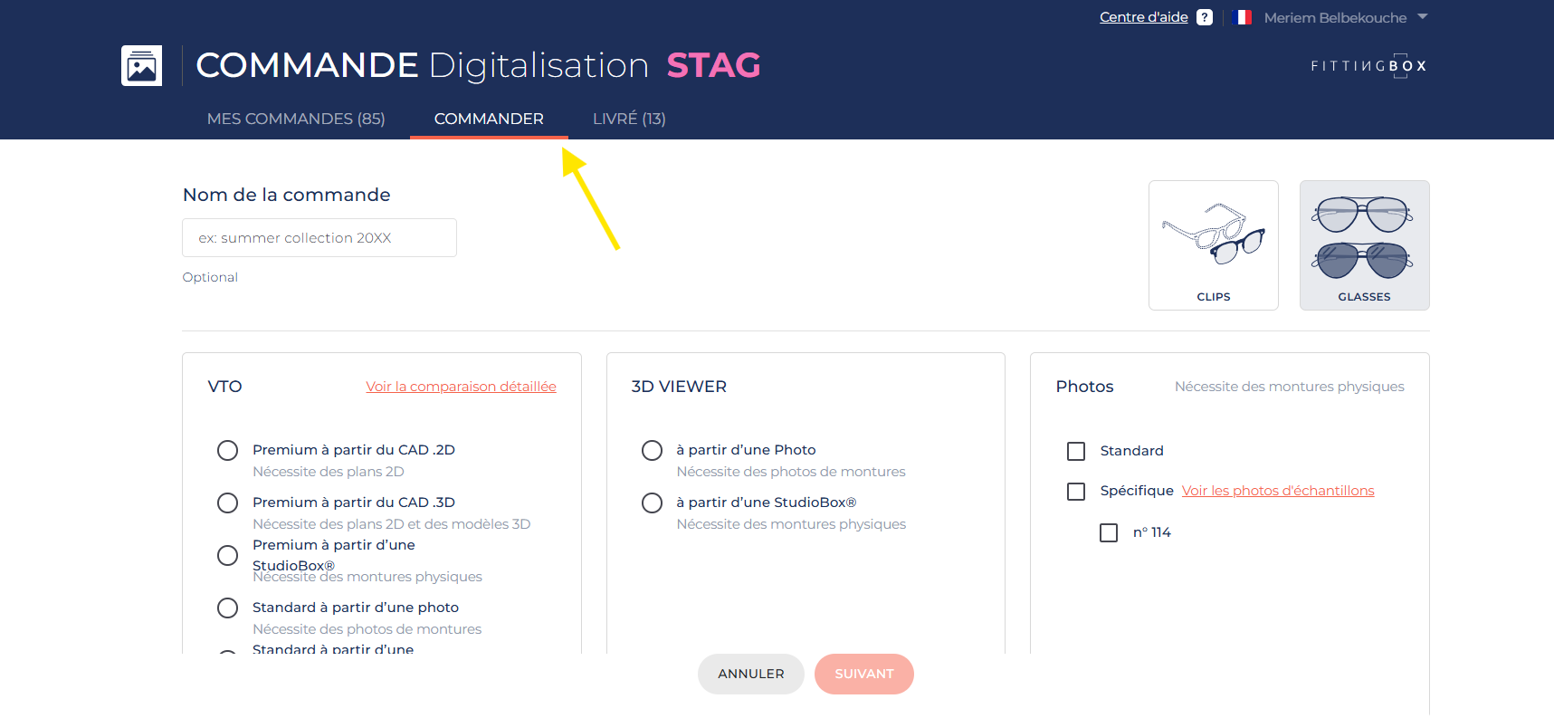 Vous pouvez créer une commande en cliquant sur l’onglet «commander »