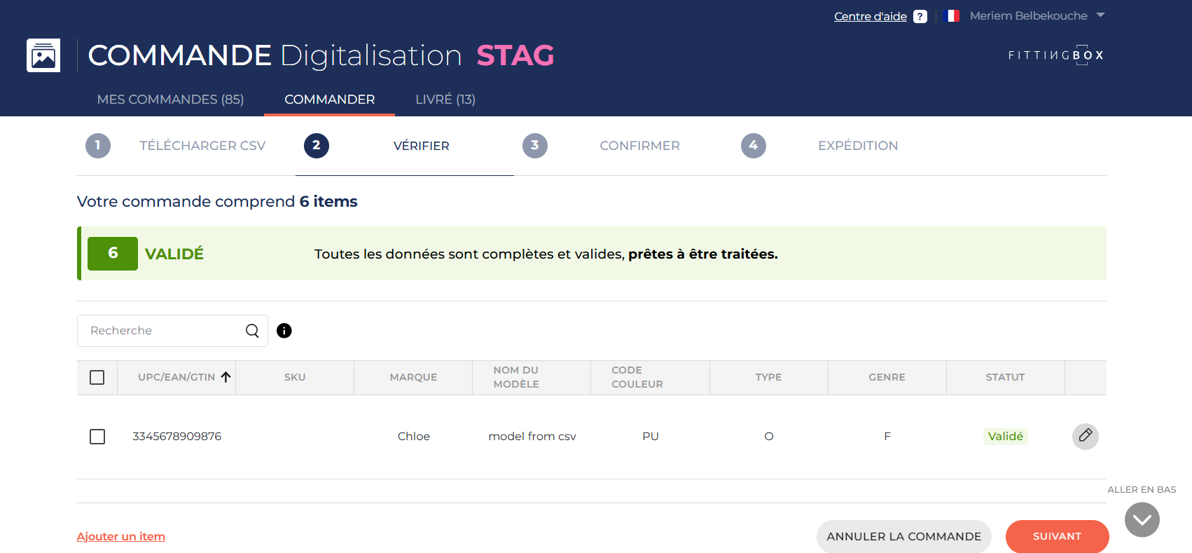 Une fois tous les éléments complétés, vous pouvez cliquer sur le bouton « Confirmer » pour passer à l’étape suivante de la commande.
