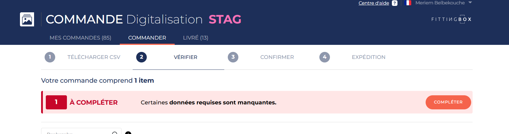 Le bouton « Confirmer » est inactif tant que tous les éléments avec le statut « incomplet » n’ont pas été corrigés. Deux solutions sont possibles :