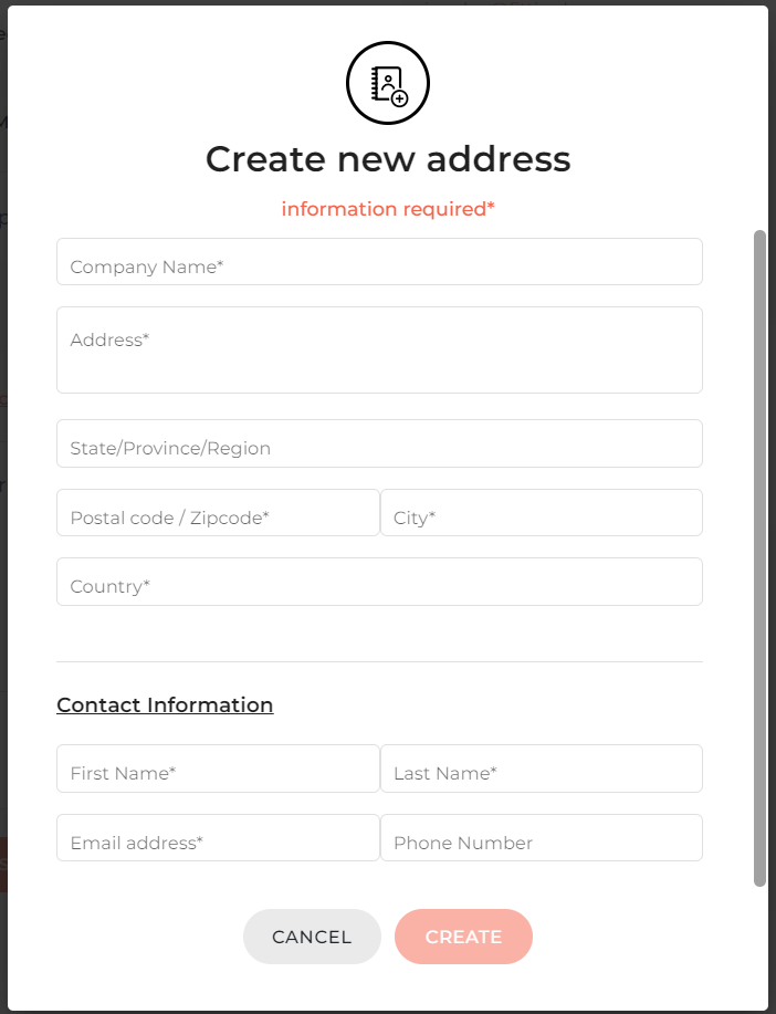 - Click on “Create” to confirm the creation of the new address.