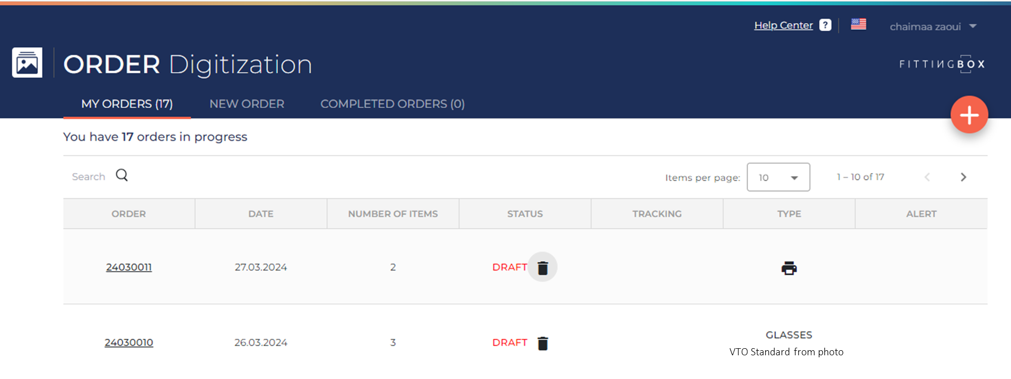 All orders in the statuses Draft, Check in progress, and Work in progress are visible in the 'My orders' tab, where you can interact with them.