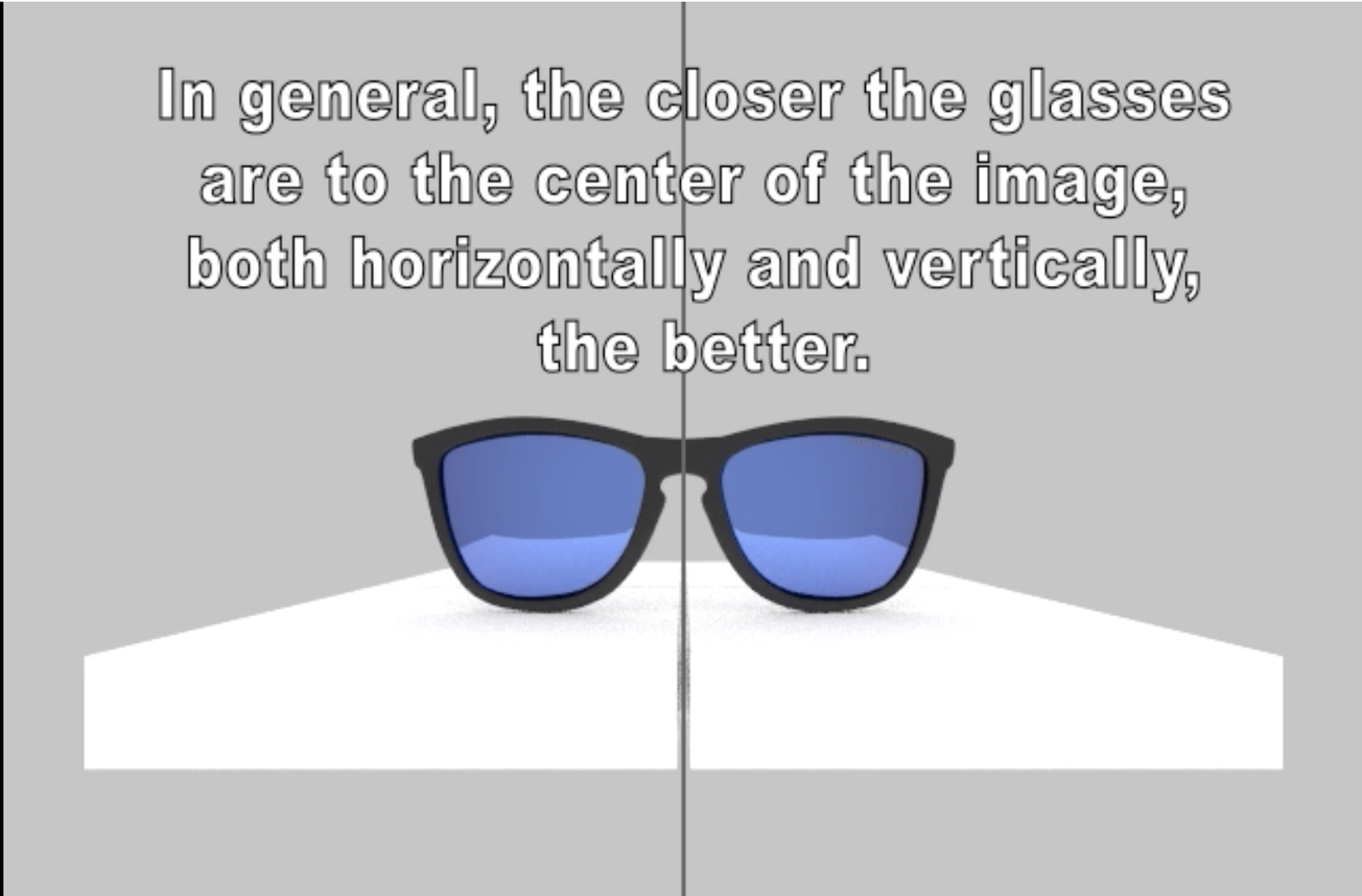 All photography must be taken on the same plane as the glasses and meet the following requirements to minimize distortion (i.e. warping) and result in Virtual Eyewear with inaccurate shape and measurements.