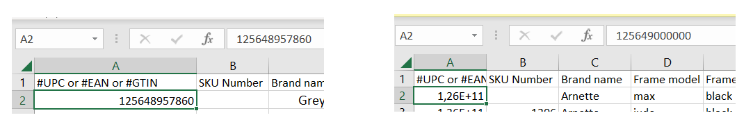 To avoid any EAN being turned into a scientific notation (exponent), please follow the following steps each time you open the CSV with Excel and update/save information.
