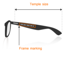 - Temple length (in mm): width of a temple