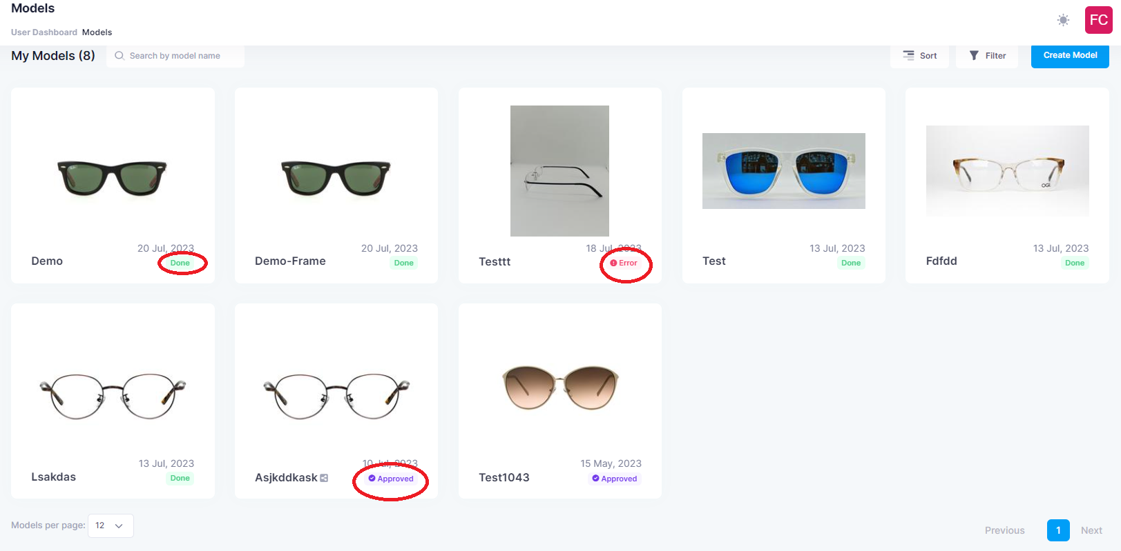 - Approved: the 3D model has been validated and ready to called for a virtual try-on on your website.