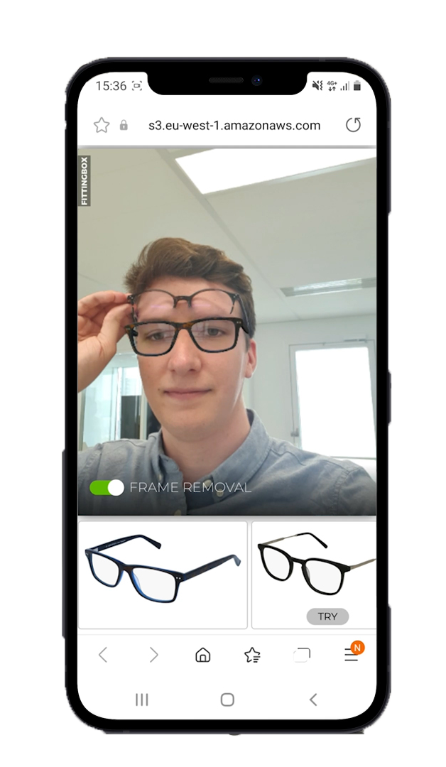 Frame Removal permet à vos clients de choisir leurs prochaines montures avec confiance et le tout, sans efforts. Cette innovation marche sur tous les visages, tous les fonds et sur les appareils dernière génération: téléphones, tablettes et ordinateurs.