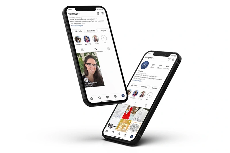 La solution de Fittingbox place des montures digitales ultraréalistes (lunettes de vue et lunettes de soleil) sur le visage de l'utilisateur via le flux de la caméra de votre appareil et assure un essayage à la taille grâce à la fonction "Garantie de la taille".