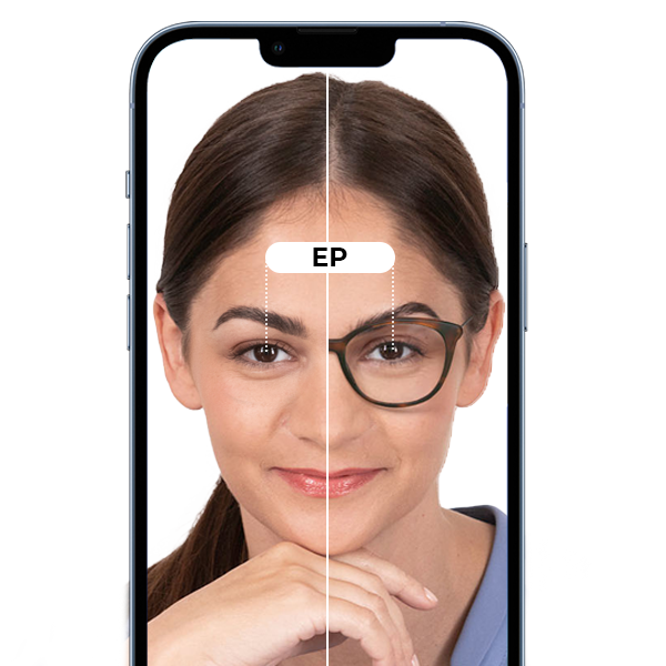 L'écart pupillaire (EP ou PD) est la distance entre les deux pupilles en millimètres et est utilisée pour positionner correctement les verres des lunettes de prescription.