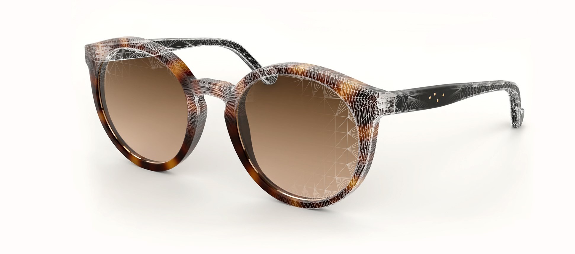 La particularité des montures de lunettes est que les reflets des verres sont particulièrement présents. Sur une même monture, il peut y avoir différents matériaux, avec des parties très fines. Comme c'est la lumière qui donne un effet de volume, les reflets lumineux sont cruciaux dès qu'il s'agit de parties métalliques ou des verres d'une paire de lunettes.